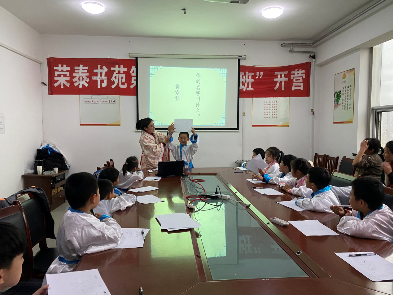 2020年11月21日下午3時,榮泰書苑第一期開營典禮在集團(tuán)4樓會議室如期舉行。參加此次典禮的人員有監(jiān)察部經(jīng)理董毓華,工會主席吳仕娟,給孩子們上國學(xué)課的曹家茹老師,二十多位職工家屬和孩子們。