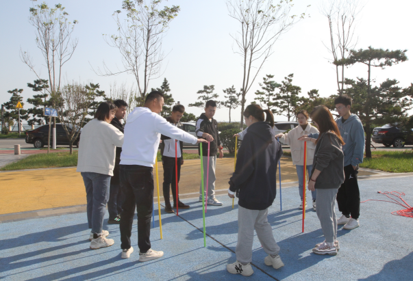 活動在活潑歡快的音樂中拉開了序幕,“摸石過橋”“不倒森林”“同心擊鼓”“巨人腳步”······這些創(chuàng)意有趣的互動環(huán)節(jié),迅速打破了青年員工的隔閡,搭建起互相認(rèn)識、溝通的橋梁。