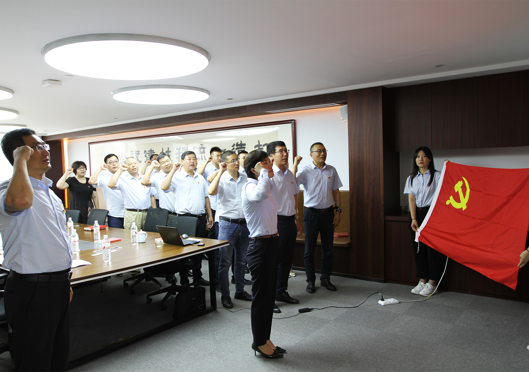 集團(tuán)黨支部于曉麗副書記帶領(lǐng)大家重溫入黨誓詞。