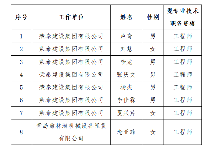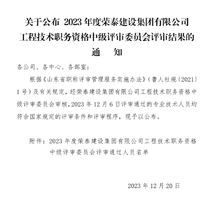 關于公布2023年度榮泰建設集團有限公司工程技術職務資格中級評審委員會評審結果的通知