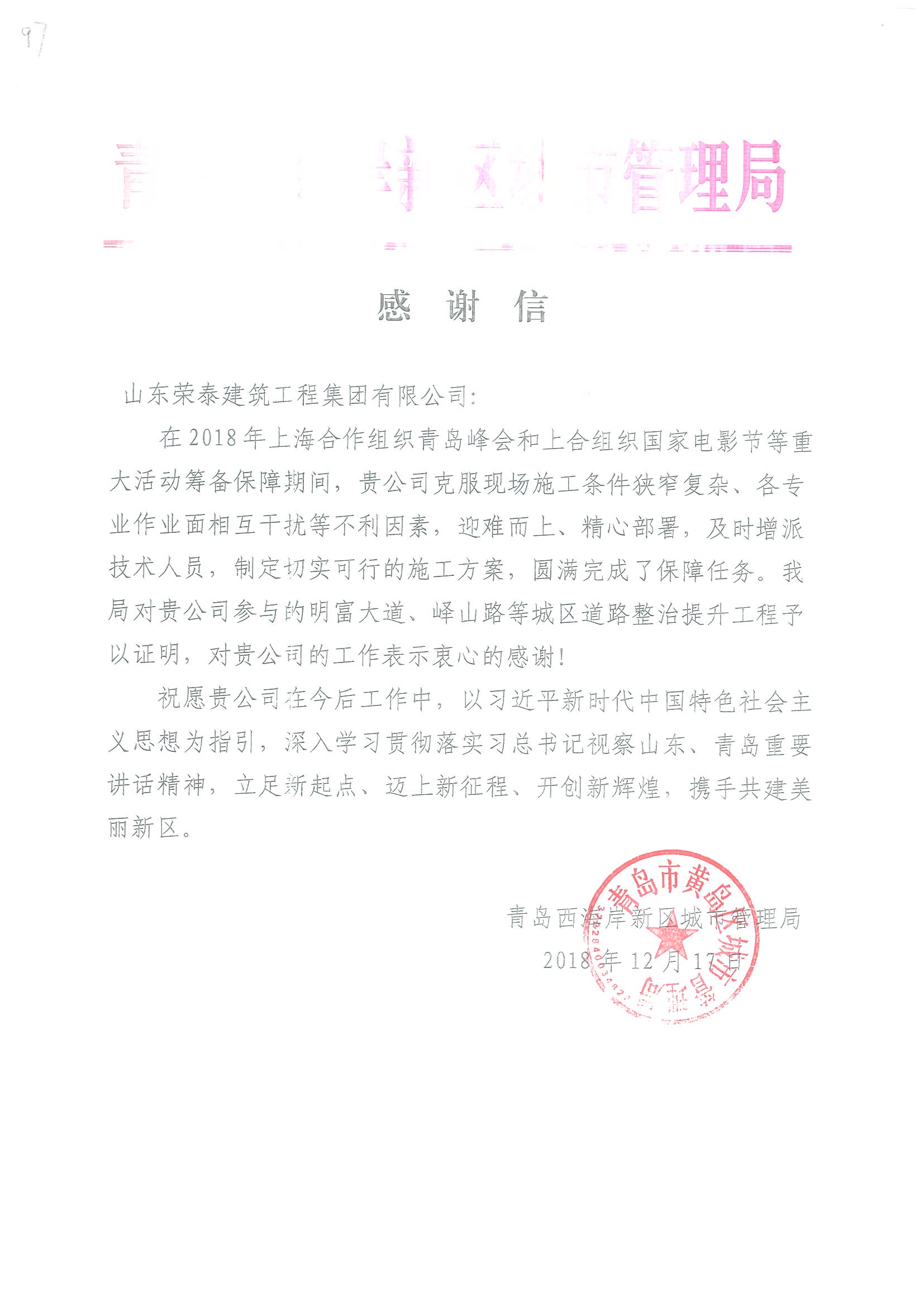 上合峰會感謝信