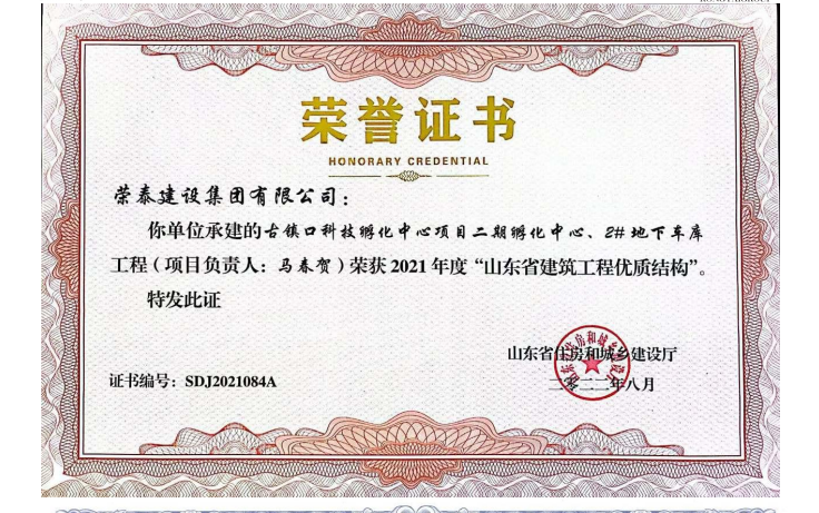 山東省優(yōu)質(zhì)工程——古鎮(zhèn)口科技孵化中心二期